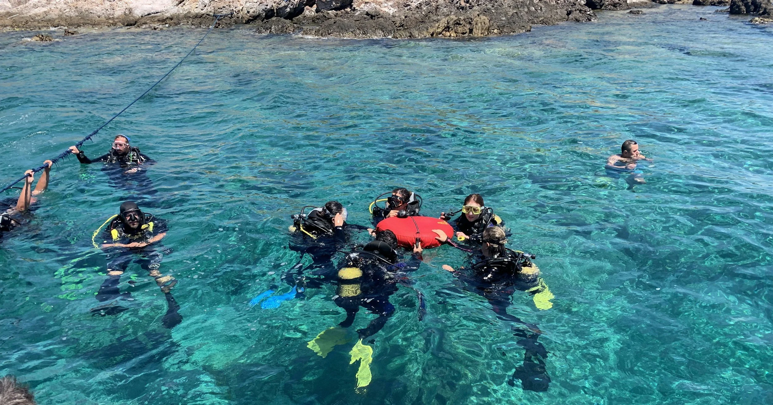 Divers returning after a break.